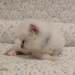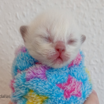 Eddie blev født som den første kl. 09.25 og med sine 79 gram som den mindste i kuldet. Men tag ikke fejl, han er fuld af krudt og kærlighed. Lur mig om ikke han ender som en af de største inden han flytter hjemmefra.